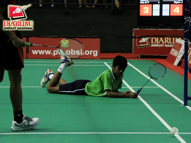 Salah Satu Peserta Tunggal Pemula Putra yang Sedang Bermain, Ryan Januar dari Klub Badminton Exist