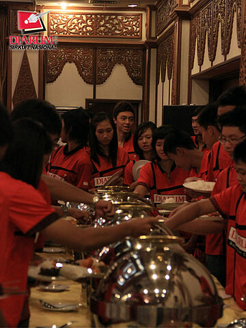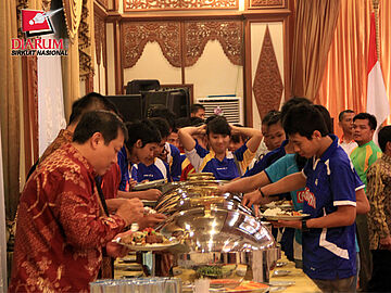 Peserta Djarum Sirnas Jambi Open 2012 dari Mutiara Bandung dan beberapa tamu undangan sedang bersiap untuk menikmati hidangan welcome dinner.
