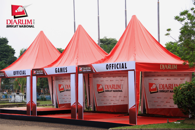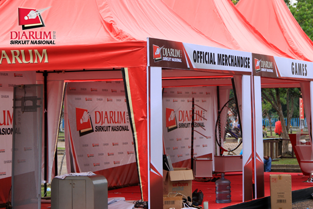 Booth Djarum di depan GOR Kota Baru Jambi yang akan menjadi tempat penjualan official merchandise.