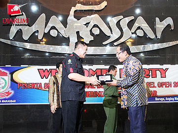 Wakil Ketua Umum PB PBSI, Mayjen TNI Sabar Yudo Suroso, Menerima Cindera Mata dari Walikota Makassar, Ir. Ilham Arief Sirajuddin