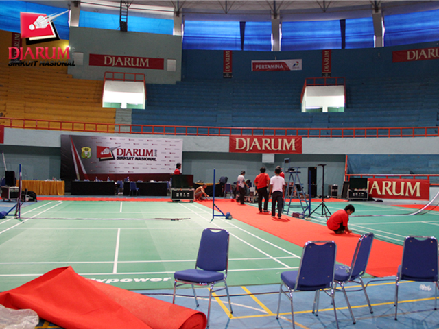 Salah satu lapangan di GOR Sudiang Makassar yang akan dijadikan arena pertandingan Djarum Sirkuit Nasional Sulawesi Selatan Open 2012.