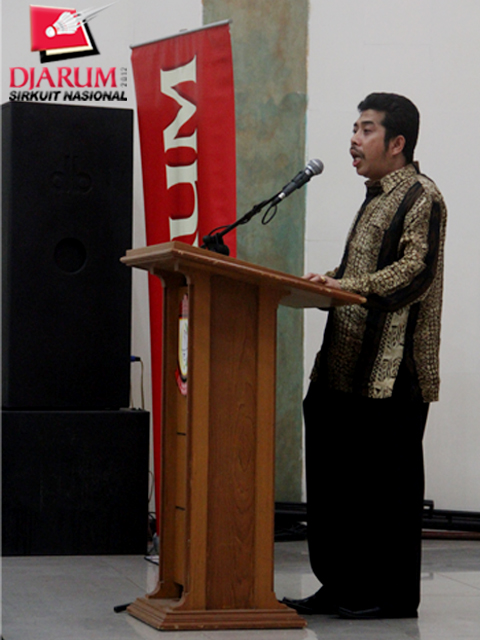 Ketua Panitia Pelaksana, Andi Darwis Massalinri, Sedang Memberikan Sambutan dalam Acara Pembukaan Djarum Sirnas Sulawesi Selatan Open 2012 (Senin, 9/4/12)