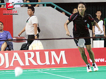 Tike Arieda dari Jaya Raya Suryanaga dengan sigap mengejar kok saat bertanding melawan Desy Nidya dari Angkasa Prestasi Gemilang. Tike memenangkan pertandingan dengan skor 21-18/21-18.