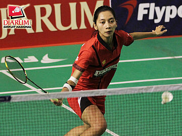 Millicent Wiranto (Pelatnas) berusaha menggapai bola dropshoot yang dilepaskan Samantha (Pelabuhan II).
