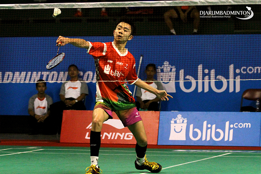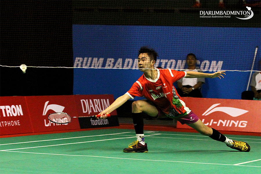 Alberto Alvin Yulianto Berusaha Menggapai Shuttlecock