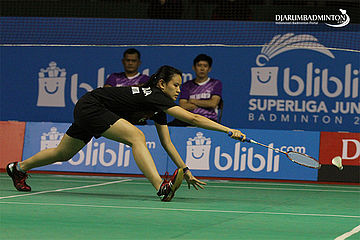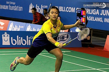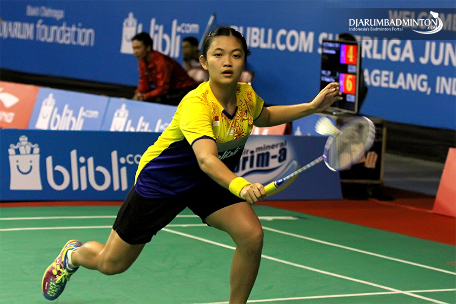 Nalinica Rahardja Berusaha Menggapai Shuttlecock