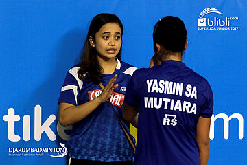 Hera Desiana (Kiri) Memberikan Arahkan Kepada Shabrina Aulia Yasmin (Mutiara Cardinal) Usai Bertanding