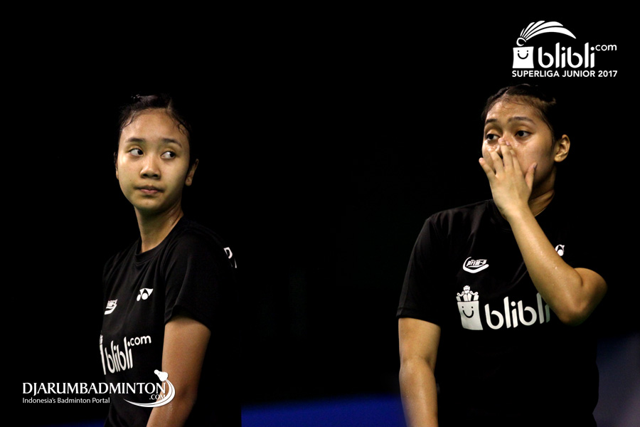 Ekspresi Nita Violina Marwah/Putri Syaikah Ulima Hidayat (Exist Badminton Club)