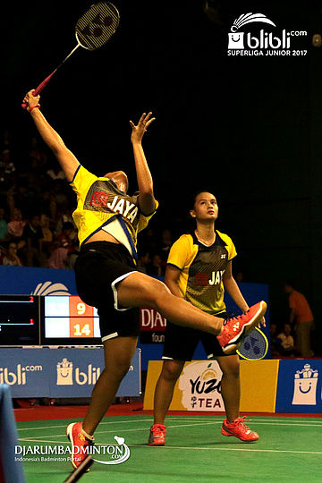 Febriana Dwipuji Kusuma/Ribka Sugiarto (Djarum Kudus) Mengembalikan Shuttlecock