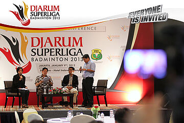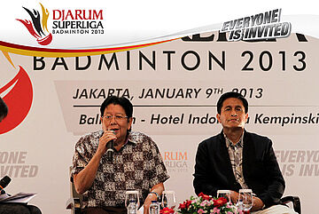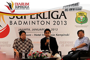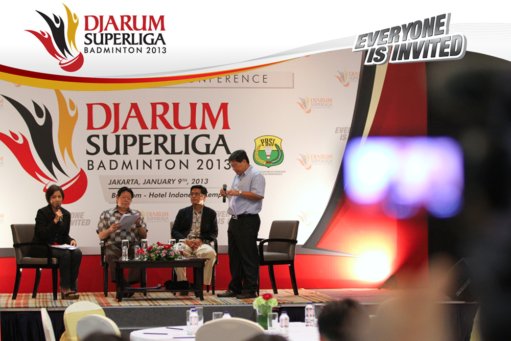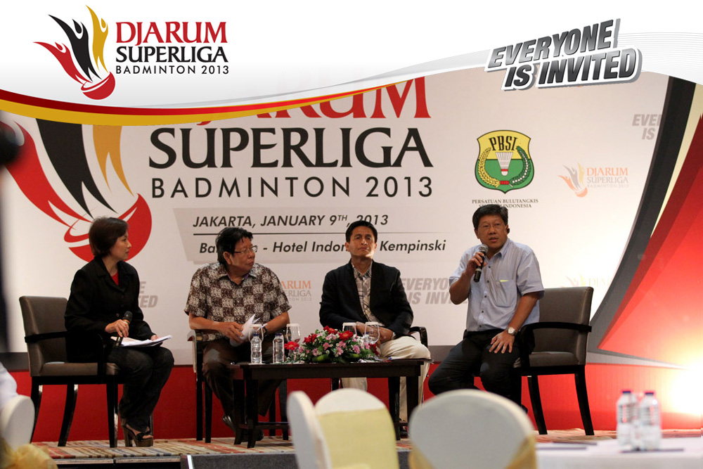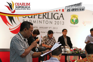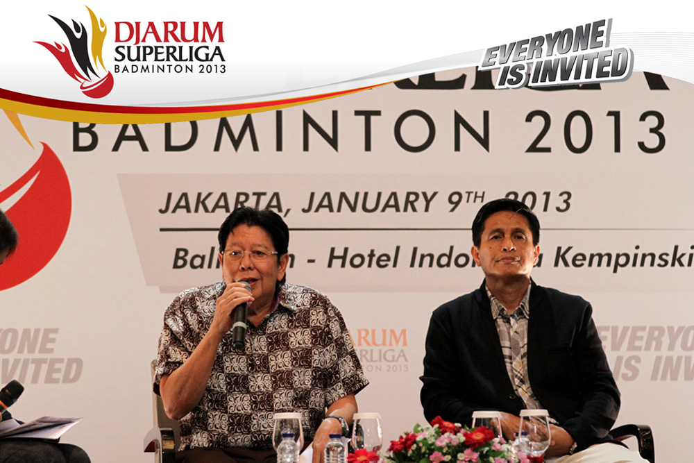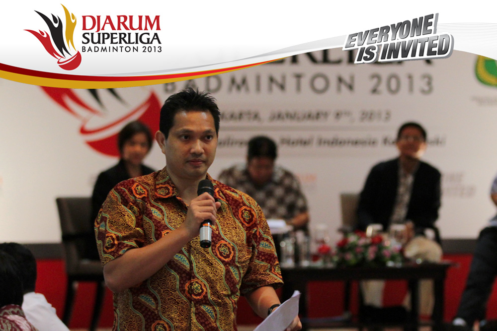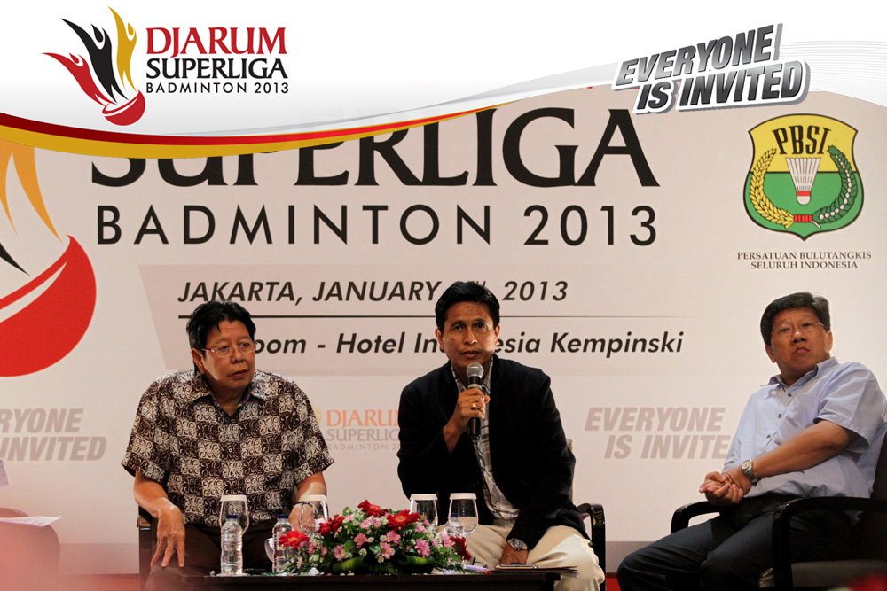 Direktur Superliga Yoppy Rosimin Memberikan Keterangan Pers Terkait Event Djarum Superliga di Hotel Kempinski, Jakarta Rabu, 9 Januari 2013