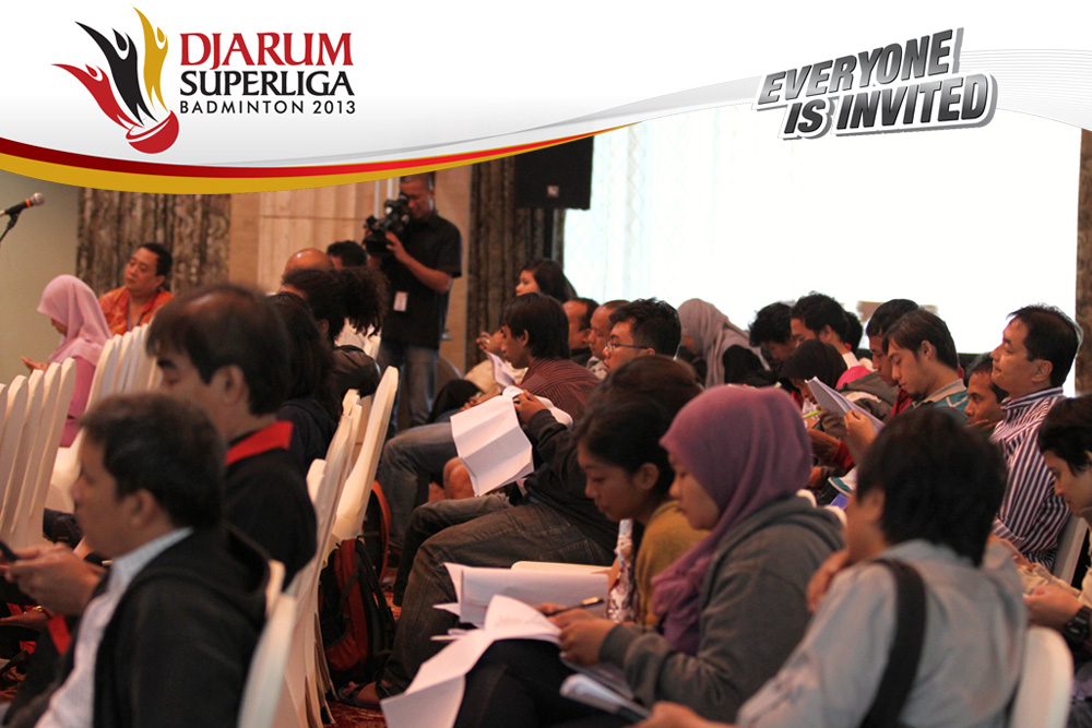 Suasana acara konferensi pers Djarum Superliga Badminton 2013 yang dihadiri sejumlah rekan media.