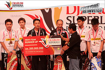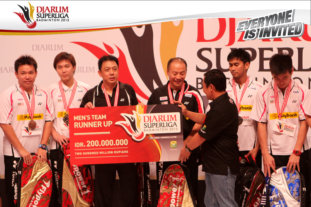Malaysia Tigers yang keluar sebagai juara kedua Djarum Superliga Badminton 2013 berhak mendapatkan hadiah uang tunai sebesar Rp 200 juta