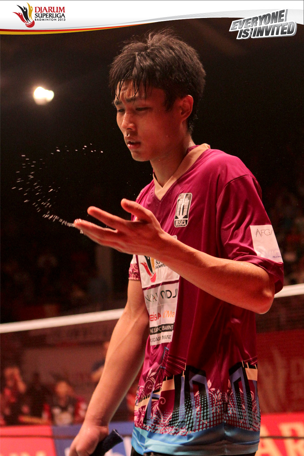 Chou Tien Chen (PB Musica Champion) membersihkan keringatnya