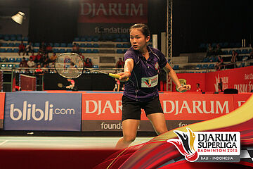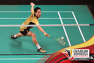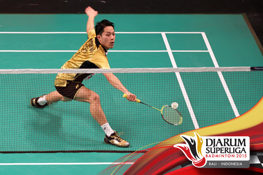 Ruselli Hartawan (Jaya Raya New Star) mengembalikan shuttlecock ke arah Kana Ito (Renesas Jepang).