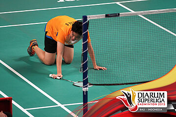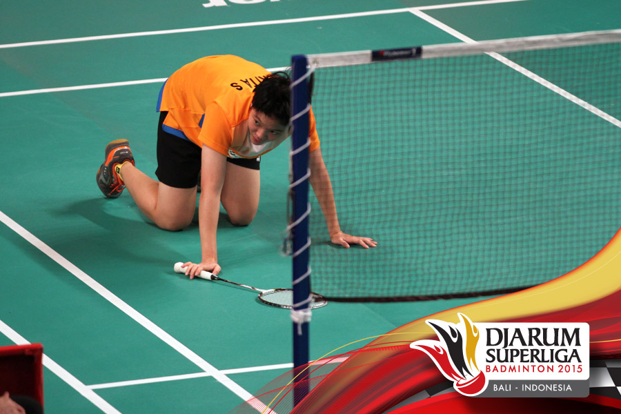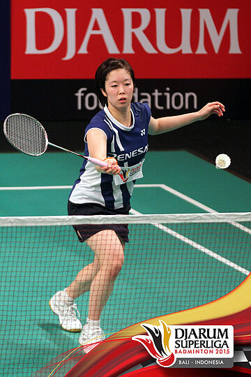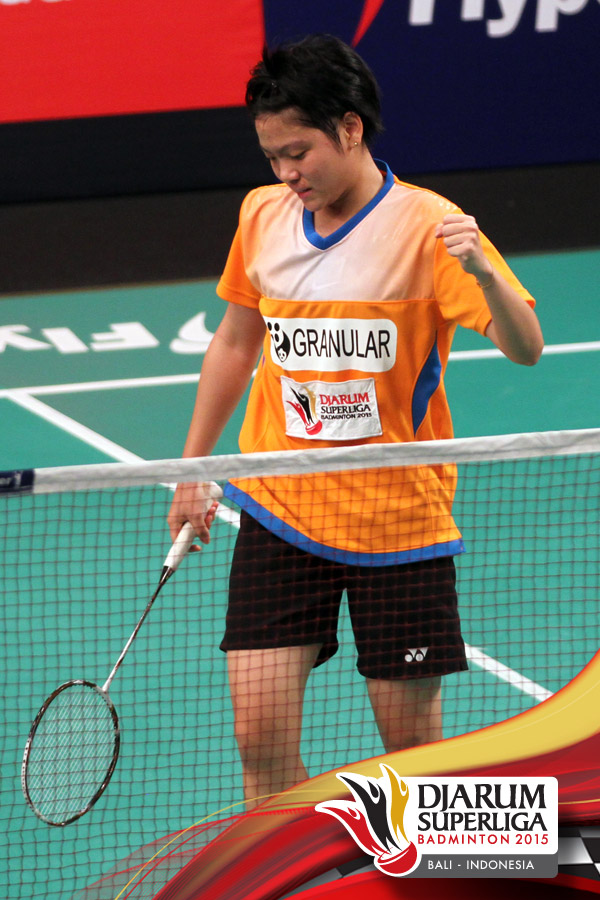Ekspresi Sarita Suwannakitaborihan (Granular Thailand) saat berhasil mencuri poin dari Ayumi Mine (Renesas Jepang).