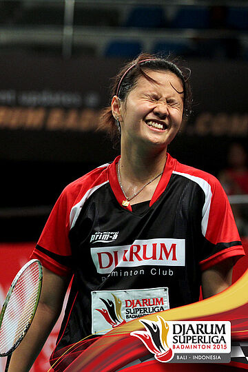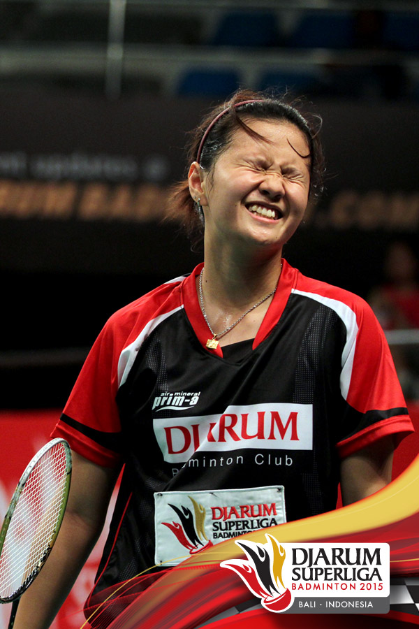Ekspresi Komala Dewi (Djarum Kudus) saat kehilangan poin.