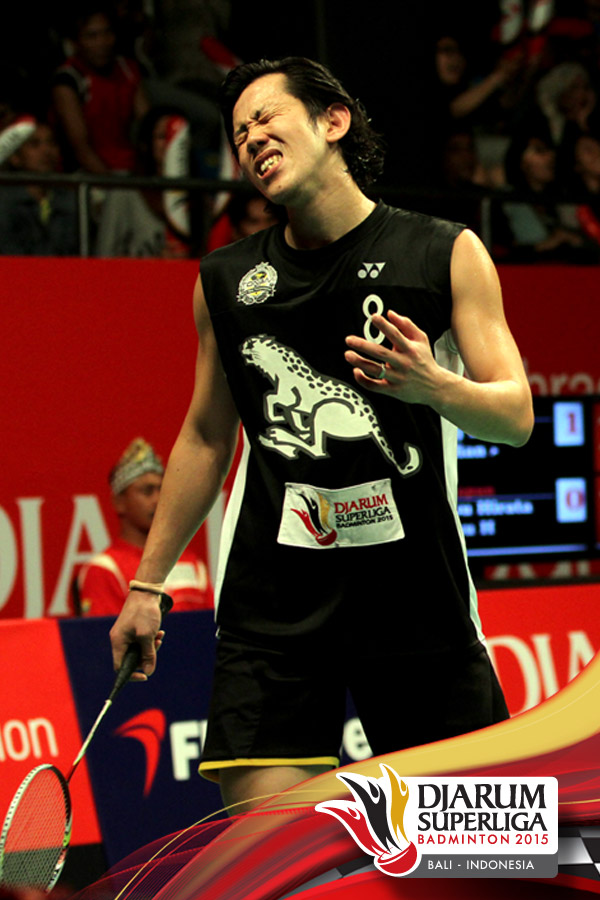 Ekspresi kekecewaan Hirokatsu Hashimoto (Tonami Jepang) saat kehilangan poin.