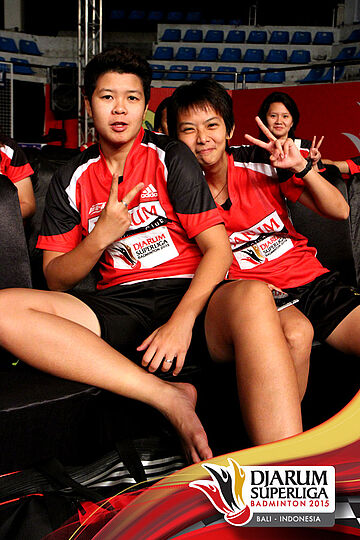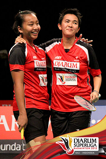 Shendy Puspa dan Jenna Ghozali (Djarum Kudus) berfoto bersama.