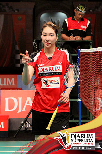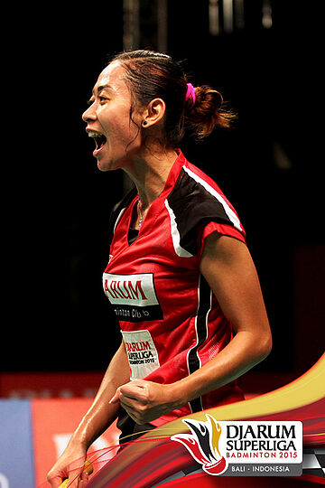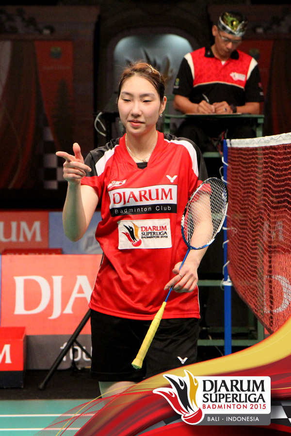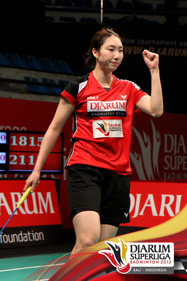 Selebrasi Sung Ji Hyun (Djarum Kudus) setelah berhasil mengalahkan Kusunose Yuka (Hokuto Bank Jepang).