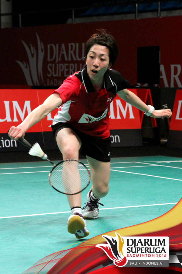 Ekspresi Sung Ji Hyun (Djarum Kudus) saat berhasil mencuri poin dari Kusunose Yuka (Hokuto Bank Jepang).