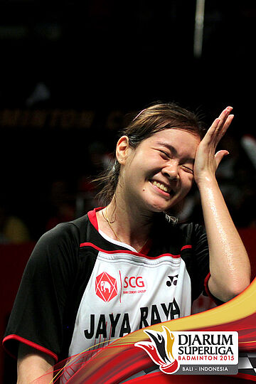 Ekspresi Busanan Ongbumrungpan (Jaya Raya) saat kehilangan poin.