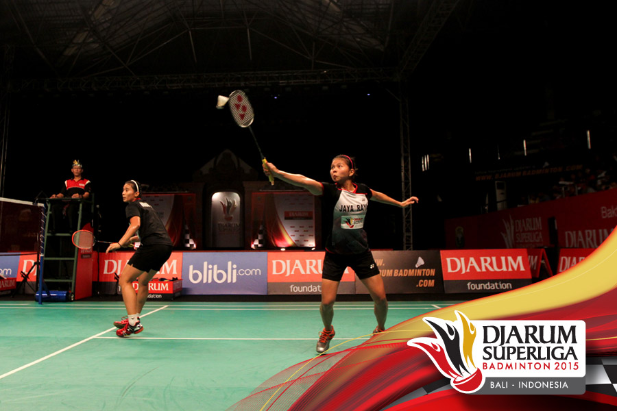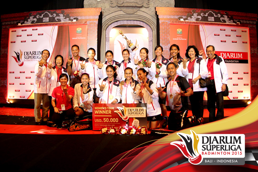 Juara putri Djarum Superliga 2015, Jaya Raya berpose bersama.