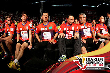 Juara ke empat putra Djarum Superliga 2015, Tonami Jepang berpose bersama.