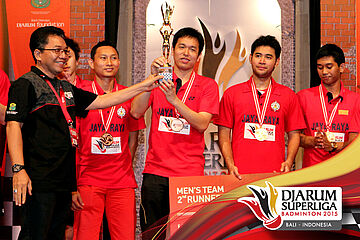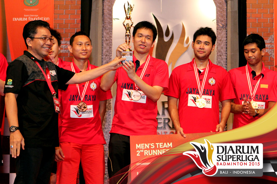 Juara ke tiga Djarum Superliga 2015, Jaya Raya berfoto bersama.
