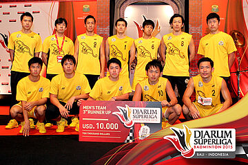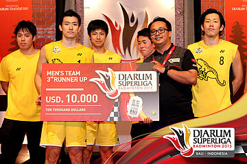 Juara ke empat putra Djarum Superliga 2015, Tonami Jepang mendapatkan hadiah uang senilai USD 10.000.