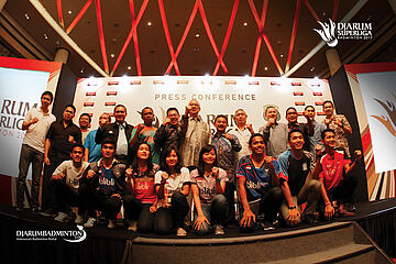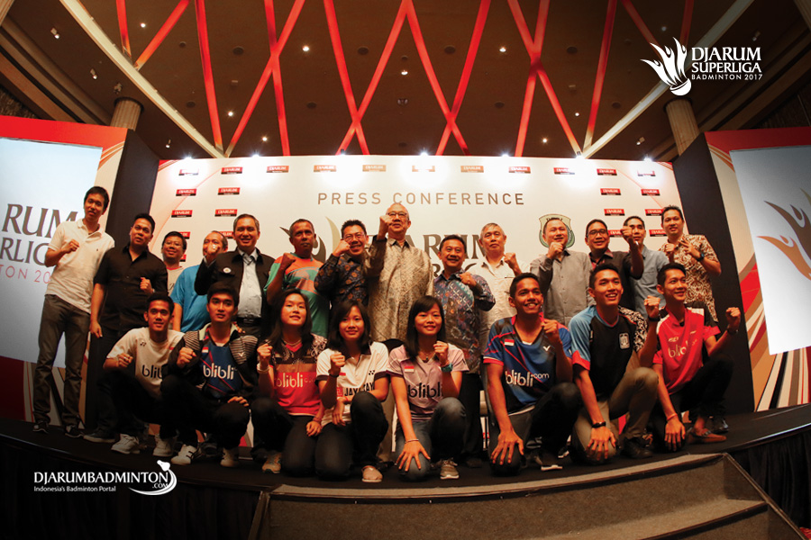 Photo bersama saat press conference acara Djarum Superliga Badminton 2017.