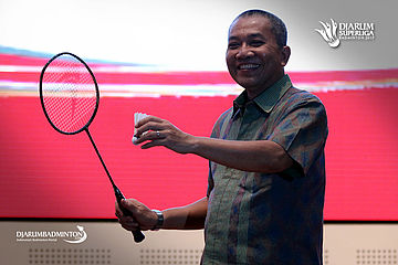 Direktur Superliga, Achmad Budiarto bersiap membuka penyelenggaraan Djarum Superliga Badminton 2017 secara simbolis.