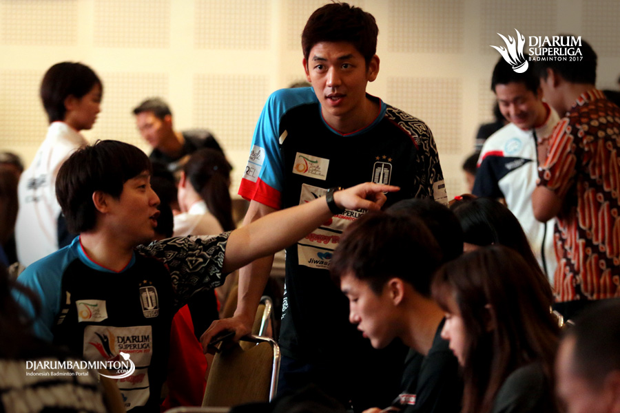 Lee Yong Dae (Musica Champion Jakarta) berbincang dengan Ko Sung Hyun.