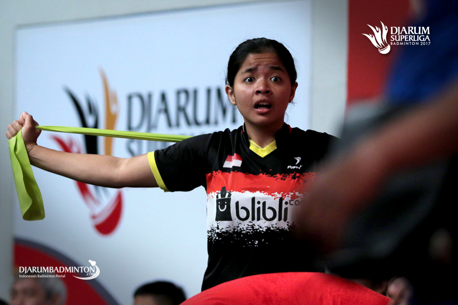 Suci Rizki Andini (Mutiara Cardinal Bandung) saat melakukan peregangan.