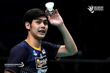 Pannawit Thongnuam (Granular Thailand) meminta pergantian shuttlecock.