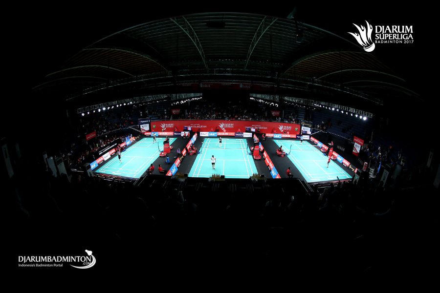 Suasana Djarum Superliga Badminton 2017 di DBL Arena, Surabaya.