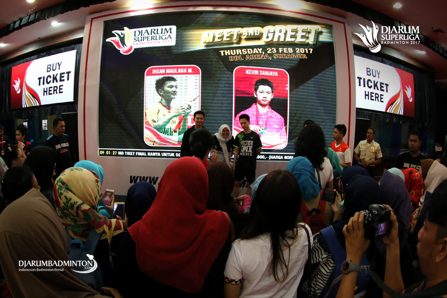 Suasana Meet and Greet bersama Ihsan Maulana Mustofa dan Kevin Sanjaya (PB Djarum).