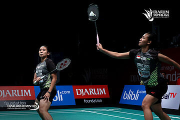 Meirisa Cindy/Ni Ketut Mahadewi (Tjakrindo Masters) menyambut pengembalian.