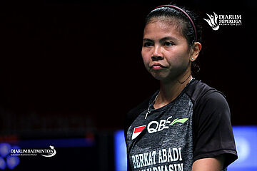 Ekspresi kekecewaan Greysia Polii (PB Berkat Abadi).