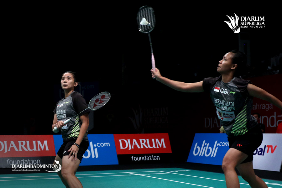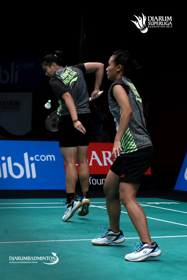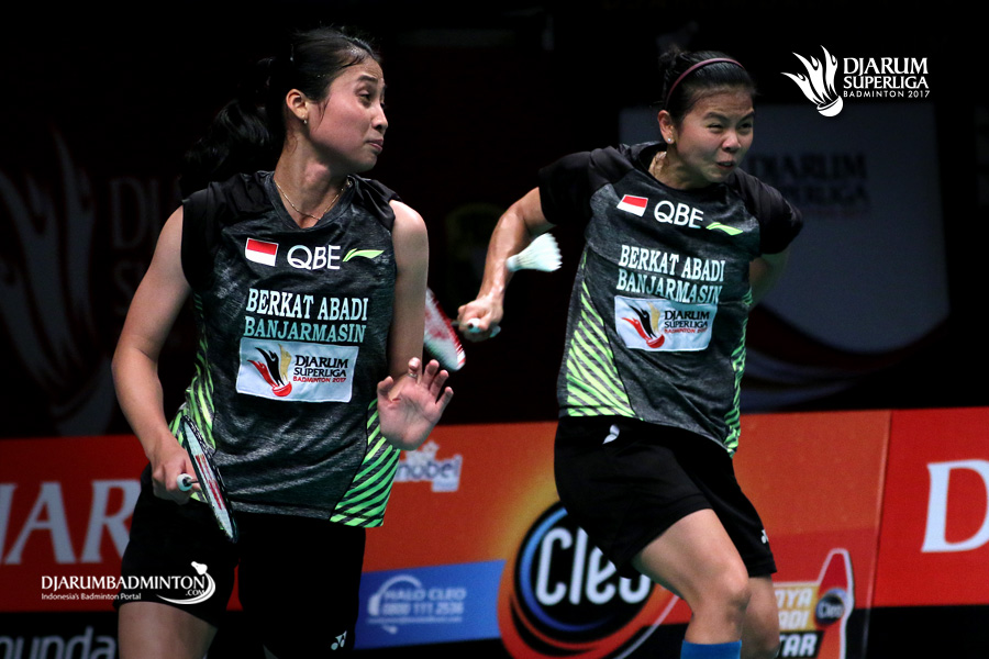 Greysia Polii/Rizki Amelia (PB Berkat Abadi) gagal menghadang serangan.