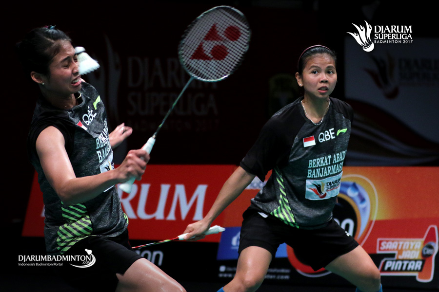 Greysia Polii/Rizki Amelia (PB Berkat Abadi) menghadang serangan.