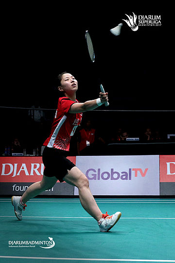 Yasuda Miku (PB Tjakrindo Masters) menyambut pengembalian.