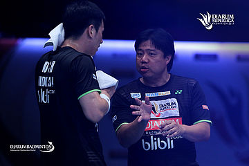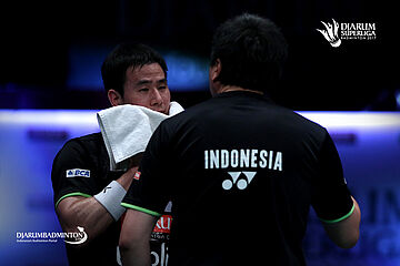 Kim Sa Rang/Lee Yong Dae (PB Musica Champion) mendapatkan pengarahan dari Trikus Haryanto.