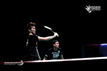 Kim Sa Rang/Lee Yong Dae (PB Musica Champion) bersiap menyambut pengembalian.
