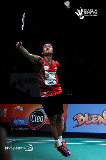 Anthony Sinisuka Ginting (PB Musica Champion) mengembalikan shuttlecock.
