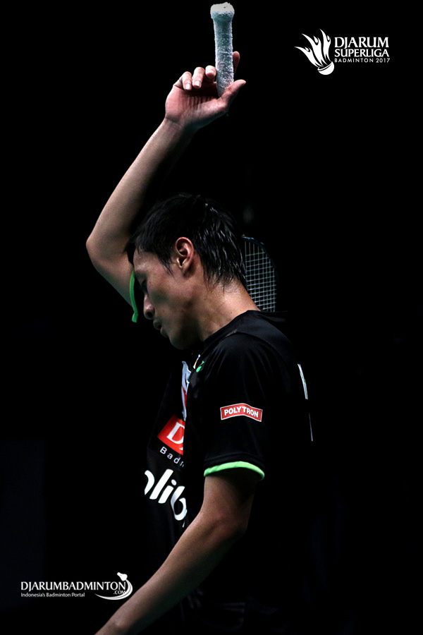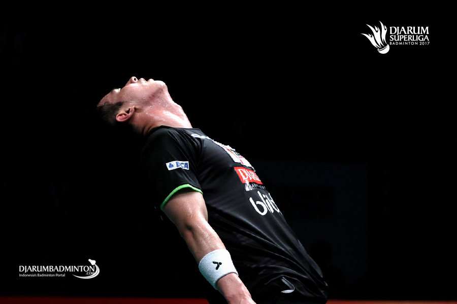 Ekspresi kekecewaan Shesar Hiren Rustavito (PB Djarum).