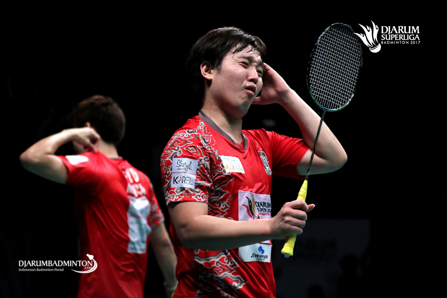 Ekspresi kekecewaan Ko Sung Hyun (PB Djarum).