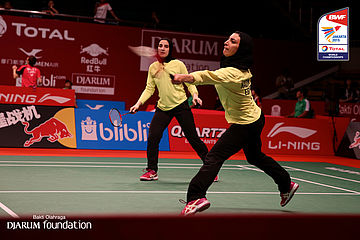 Nadine Ashraf/Menna Eltanany (EGY) mengembalikan serangan lawan