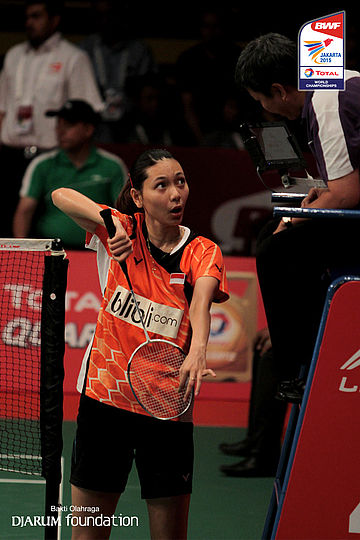 Tontowi Ahmad/Liliyana Natsir (INA) menahan serangan lawan