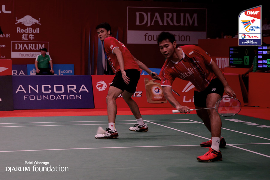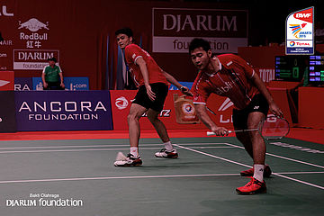 Angga Pratama/Ricky Karanda S (INA) menahan serangan lawan