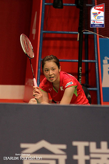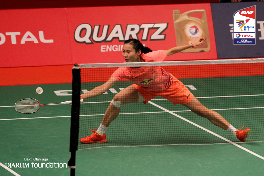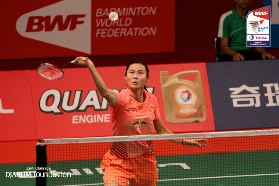 Wang Yihan (CHN) menahan serangan lawan